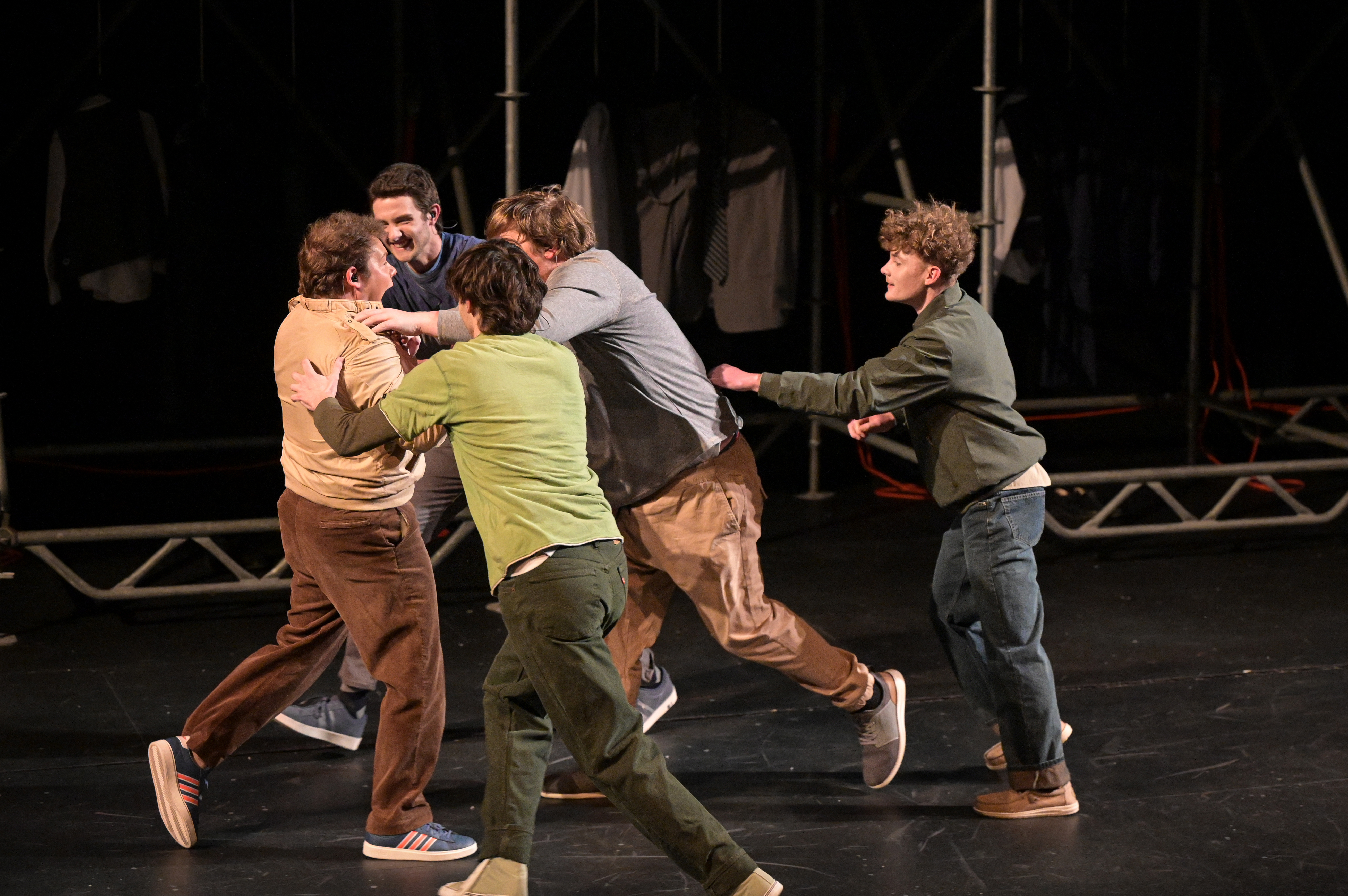 The show stars student actors Ben Donaldson, Trezdin Hair, Alex Kindig, Hunter McArthur, and Alex Schmidt as The Sons. Willats said he was looking for intellectually curious actors who were also willing to be vulnerable in public and exhaust themselves physically for the sake of the play.